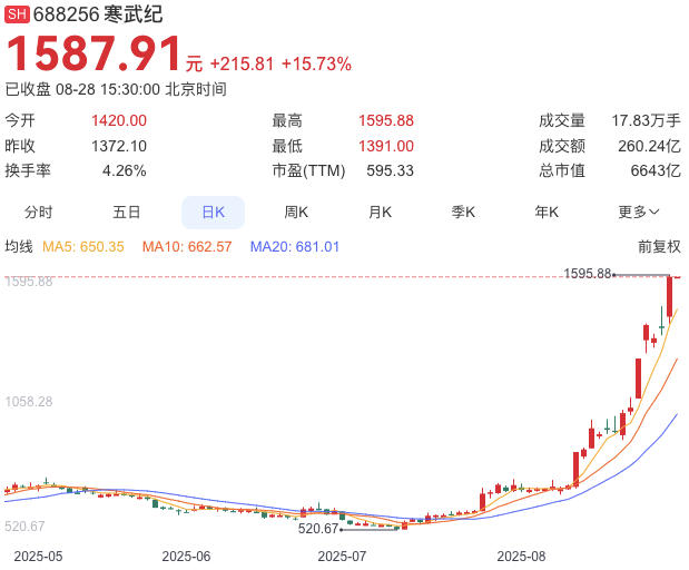 8月29日消息,28日晚间,寒武纪发布股票交易风险提示公告。