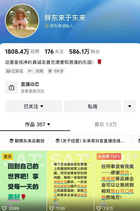 而此前力挺西贝的博文在其主页已不可见,同时账号也曾短暂处于私密状态。