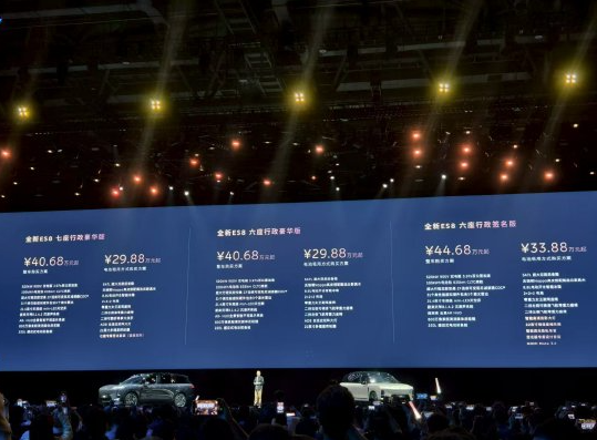 售价方面,全新蔚来ES8整车购买价40.68万元起,电池租用方式购买价29.88万元起,提供7座行政豪华版、6座行政豪华版、6座行政签名版三个版型,9月21日起将在全国正式开启交付。